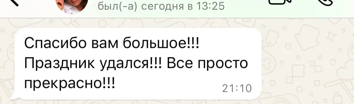 Мы с радостью возьмём на себя всё оформление и превратим ваше мероприятие в яркое, тёплое и по-настоящему сказочное шоу. Вам останется только наслаждаться моментом и принимать поздравления 🥂