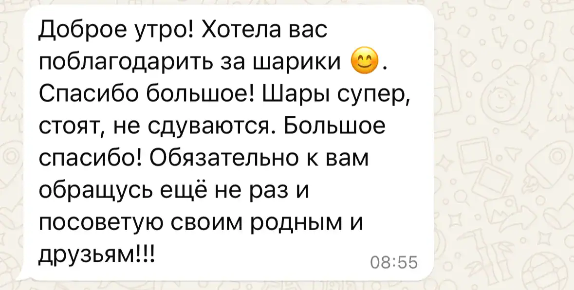Именно воздушные шары создают ту самую атмосферу счастья и радости. Свяжитесь с нами — и мы сделаем ваш праздник по-настоящему волшебным! 🚀