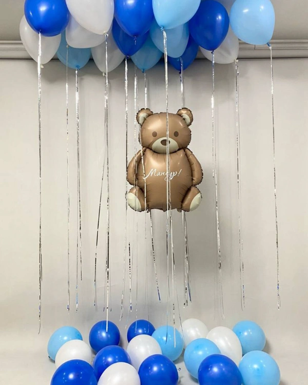 ⦁ Презент к основному подарку. Привяжите к подарку воздушный шар заполненный гелием — это придаст торжественный внешний вид сюрпризу и будет максимально привлекать внимание. Столь не обычный способ подачи сюрприза вызовет улыбку на лице получателя. Отлично подойдет для такой идеи Сердце, Панды в невесомости, 46см.