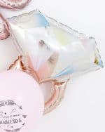 Фольгированный воздушный шар в виде фигуры. Имеет встроенный клапан. Приспособлен под гелий. Фольгированные воздушные шары изготавливаются из тонкой миларовой пленки, позволяющей шару не сдуваться в течении нескольких дней.