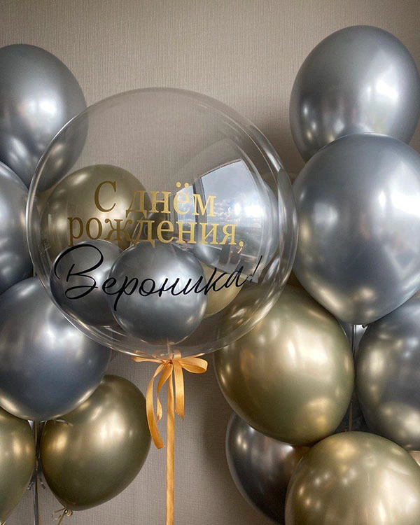 - 1 шар Баблс с конфетти и индивидуальной надписью