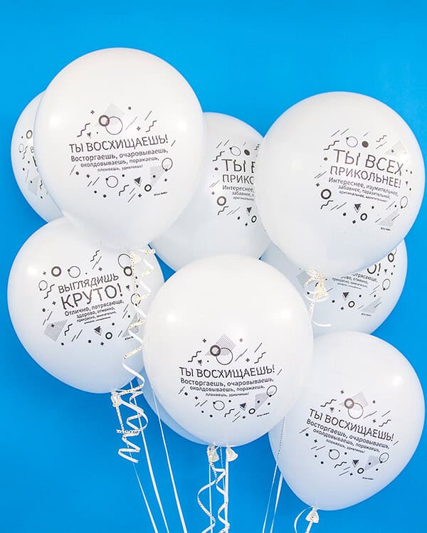 Воздушные шары из натурального латекса с шелкографическим рисунком тематических дизайнов станут идеальным украшением праздничного торжества, а букет из воздушных шаров поднимет настроение в любое время года.